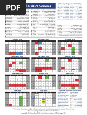 Framingham Public School 2020 Calendar Academic Term Holidays