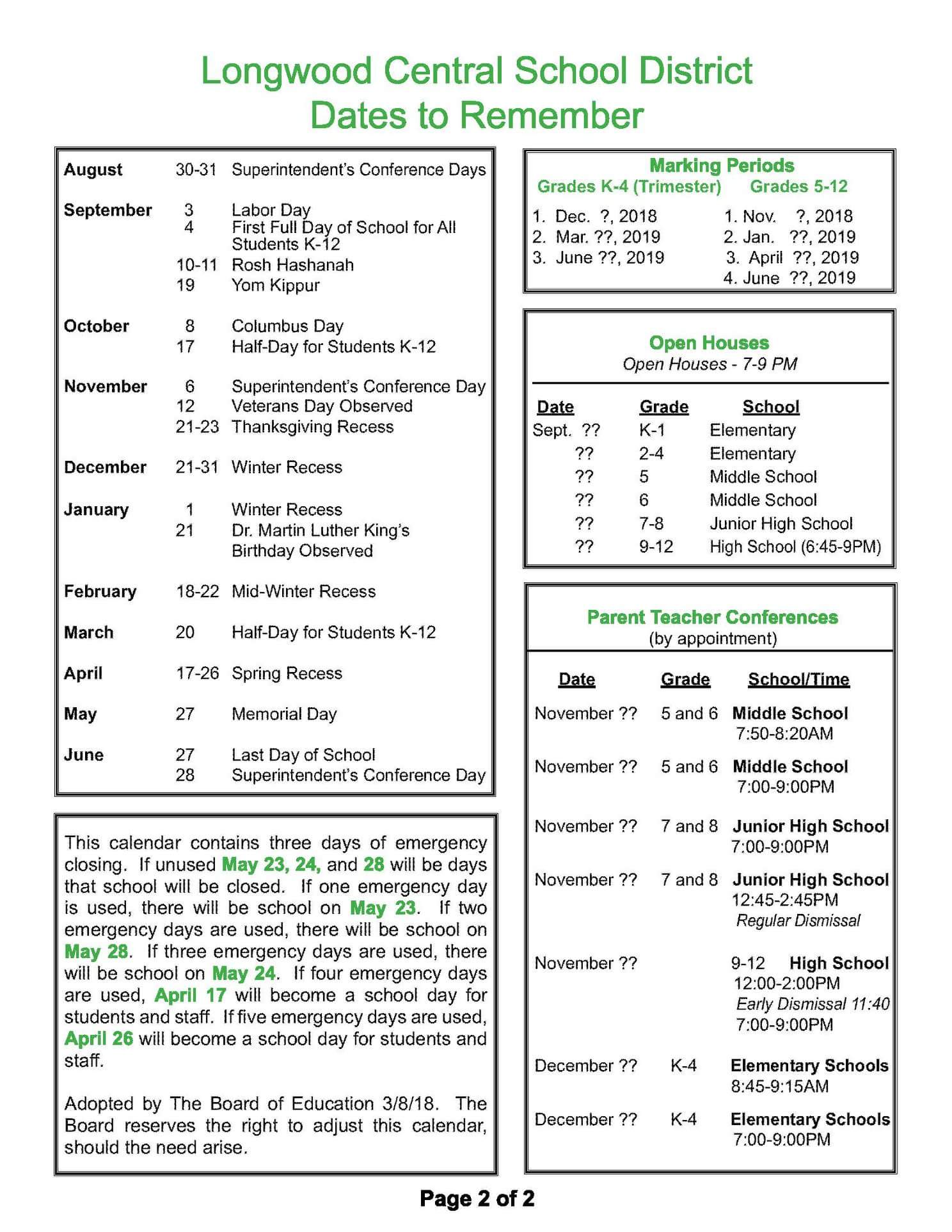 Longwood Jhs On Twitter The 2018 19 School Calendar Was Approved At Last Night S Boe Meeting