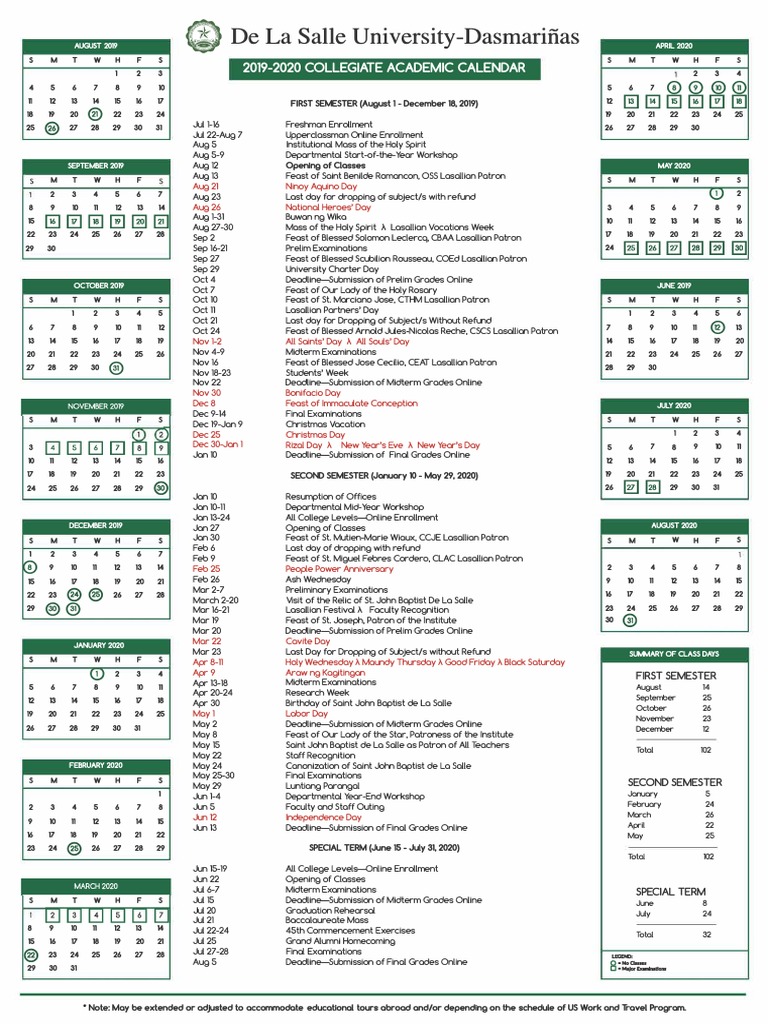 Usg Announce Academic Calendar Term 2 Ay 2019 2020 Dlsu