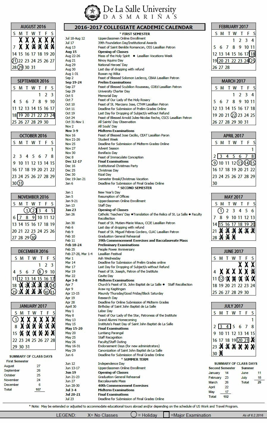 Dlsu D Usc On Twitter Here S The 2016 2017 Collegiate Academic Calendar Please Be Informed Lasallians