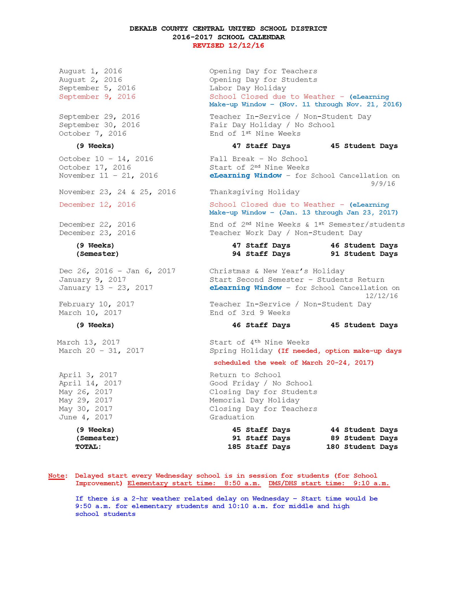 Dekalb Central On Twitter Here S The Revised 2016 2017 School Calendar Note The Elearning Window Jan 13 Jan 23 To Make Up For Today S Cancellation Https T Co Ujma6yxxjp