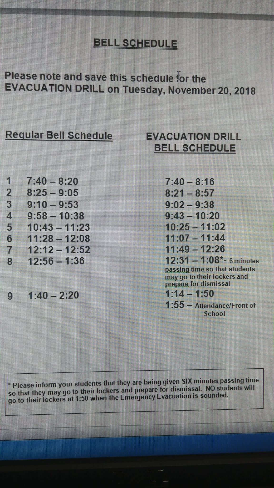 Harborfields High School On Twitter Reminder About Today S Adjusted Bell Schedule For Our Evacuation Drill Hhs Dismisses At 1 50
