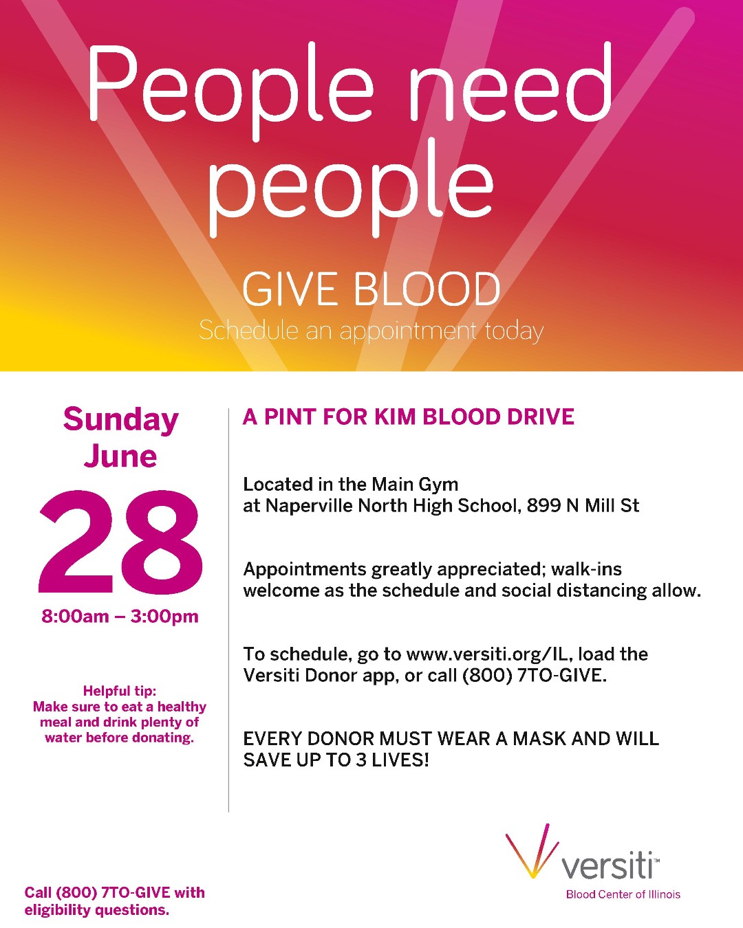 Naperville Cusd 203 203unites On Twitter People Need People To Give Blood Please Sign Up For Sunday June 28th 8 00am 3 00pm A Pint For Kim Blood Drive At Naperville North High